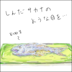 昨日は肉を描いたので、じゃあ今日は魚を…と思ったら。